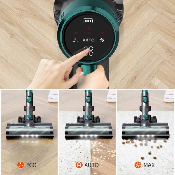 L’aspirateur balai U11 possède 3 modes d’aspiration en différentes vitesses. En mode MAX, la vitesse de l’aspirateur peut atteindre à la puissance la plus forte. L’appareil peut fonctionner jusqu’à 55 minutes au maximum en mode ECO, qui est idéal pour un nettoyage prolongé