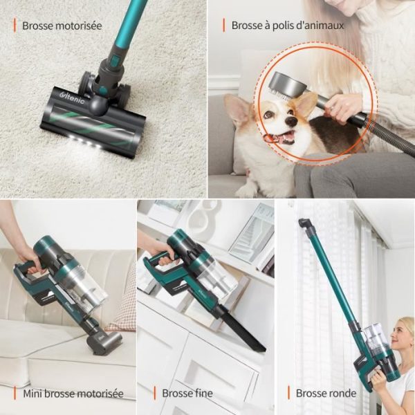 Ultenic U11 Aspirateur Balai Sans Fil Sans Sac, 4 en 1 Puissant et Léger, 25Kpa, 55min, Station d’Accueil, Détection du Tapis